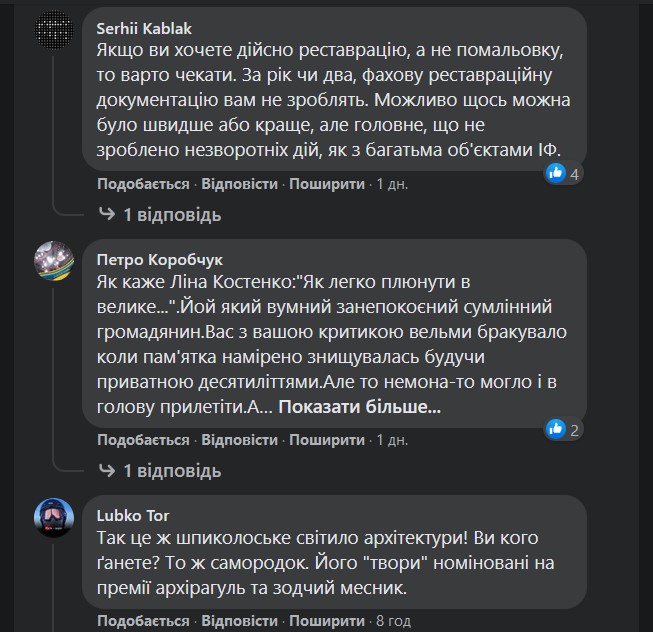 "Як думаєте, що мав би зробити справжній професіонал, архітектор, менеджер після таких результатів своєї діяльності на четвертий рік роботи? На мою думку, він мав би застрелитися. Можливо це могло б його врятувати від ганьби. Є ще варіант - всім працівникам взяти неоплачувану відпустку на місяць другий. Гроші зекономлені на зарплаті (за один місяць ~500 тис грн) використати для встановлення ринв. Цей варіант не врятує від ганьби, але хоч щось...", - зазначив Ростислав Хабурський, власник столярно-меблевого виробництва.