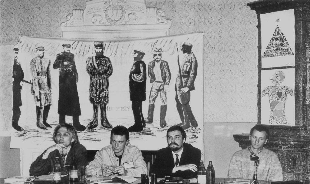 Прес-конференція “Лагідного тероризму”. На фото: Ярослав Яновський, Анатолій Звіжинський, Мирослав Яремак, Ростислав Котерлін.