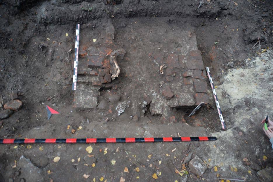 - Імовірні фундаменти центральної частини палацового корпусу 1680–1730-х років (траншея 1).