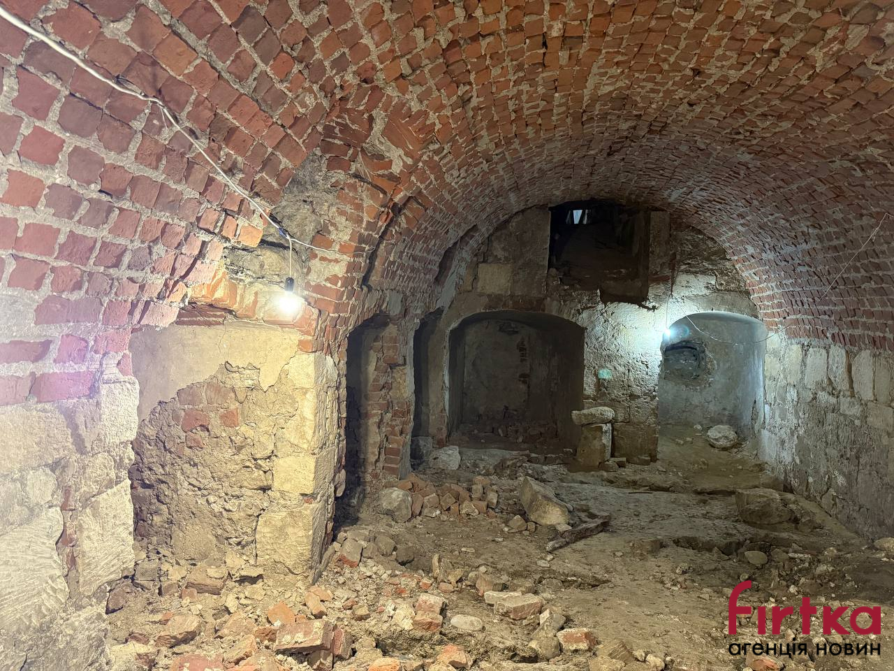 Дослідники виявили прохід, що може вести до коридору чи іншого приміщення зі склепінчастою стелею. Глибина сміття сягала понад два метри; артефакти датуються XVI-XVII століттями. Попередні обстеження (2023 рік) за допомогою відеокамери підтвердили наявність дверей та можливого двоповерхового підземелля.