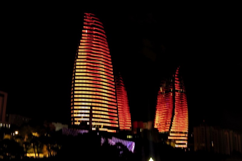Новітній символ міста - Flame Towers (Башти вогню) - три висотних будівлі, які нагадують язики полум'я. Особливо красиво це все виглядає вночі, коли башти по черзі перетворюються на азербайджанський прапор, потім - на язики полум'я, а після цього підсвічуються різними кольорами.