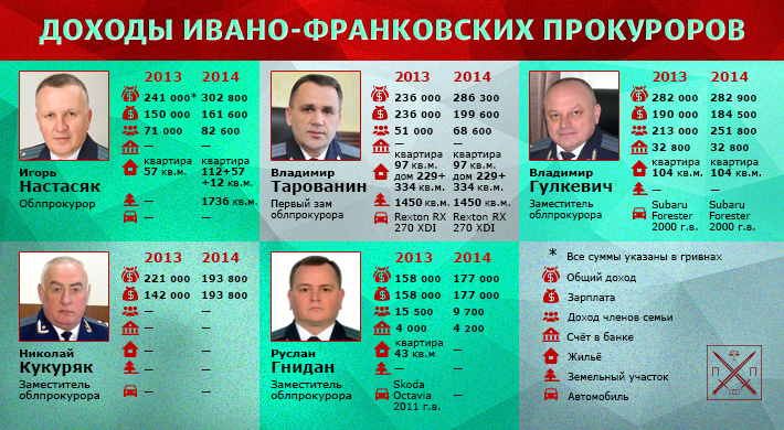 Втім, із зростанням прокурорської самовпевненості, ростуть і офіційні доходи Настасяк. Ще в 2013-му він заробляв 241 тис. Грн. на рік, з них 150 тис. грн. - Заробітня плата. А вже в 2014-му дохід прокурора склав 302,8 тис. Грн., З них 161,6 тис. Грн. - Зарплата, 50 тис. Грн. - Дохід від підприємництва, 91,2 тис. Грн. - Інші види доходів.