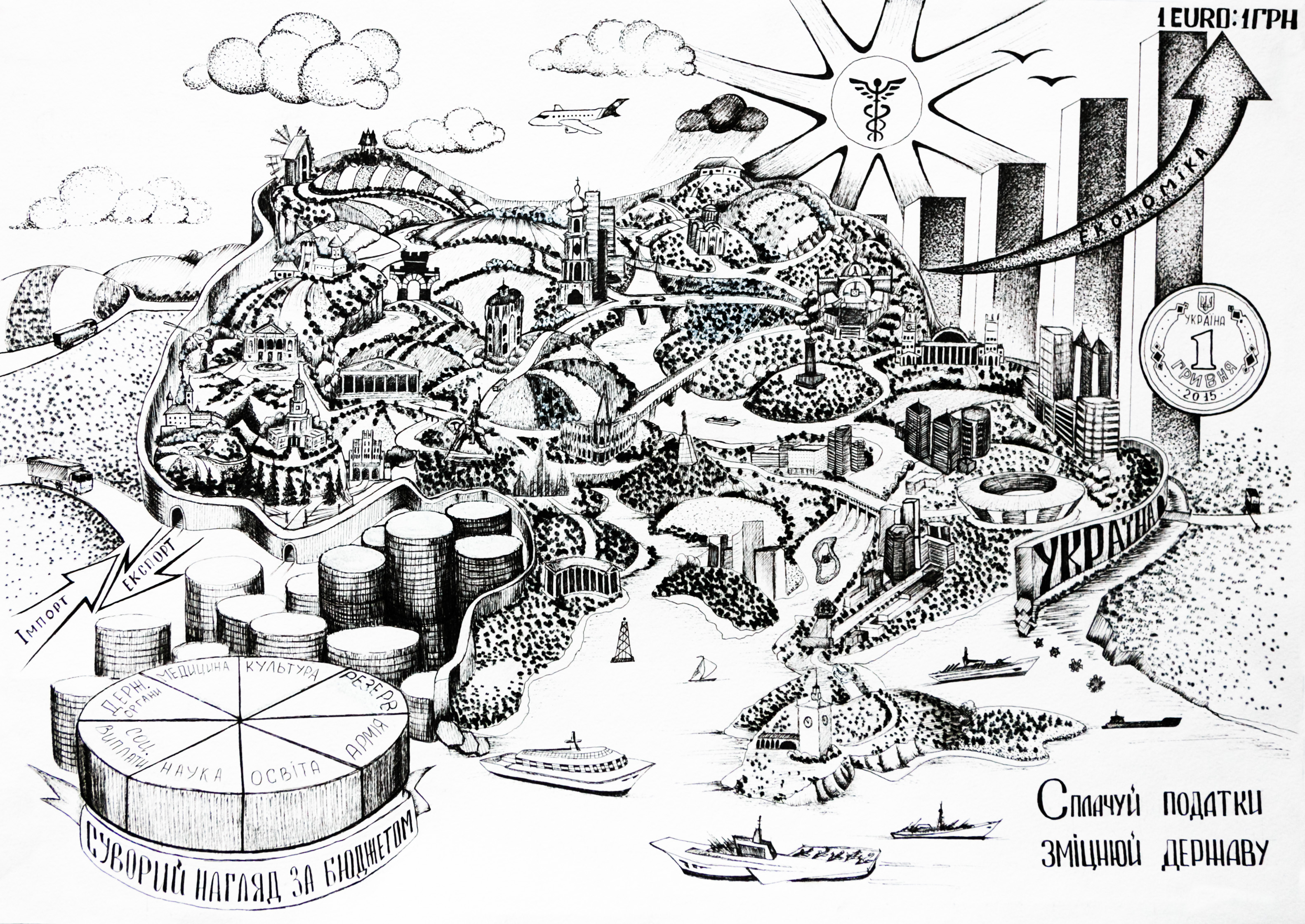 Її художня композиція «Сплачуй податки зміцнюй державу» посіла перше місце в старшій віковій категорії за напрямком «Художні твори».