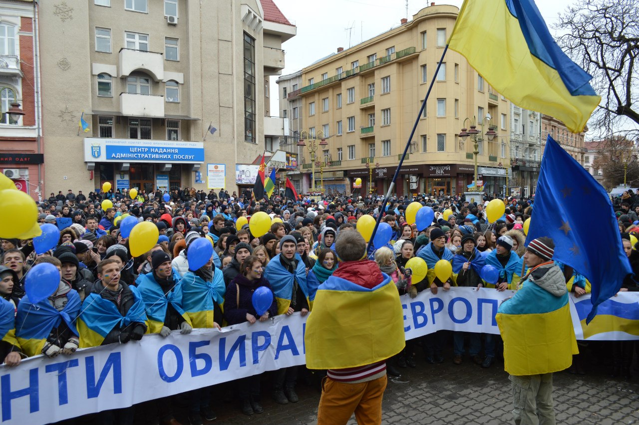 Якось вже звиклося за останній тиждень бачити на Вічевому майдані столиці Прикарпаття молодих людей із національною символікою та символікою Євросоюзу, що грілися біля імпровізованих вогнищ. Ні дощ із мокрим снігом, ні холод не зламали студенство.