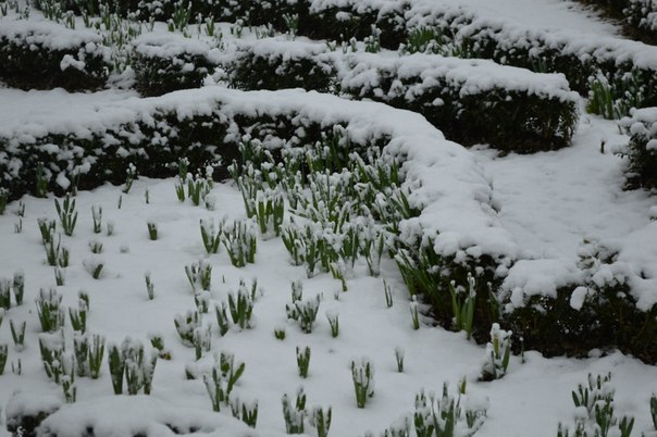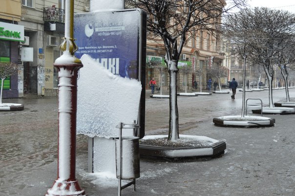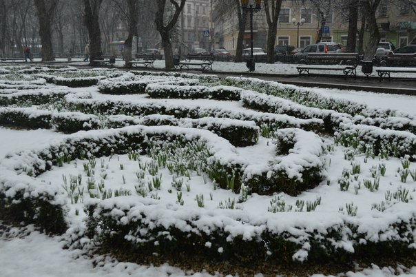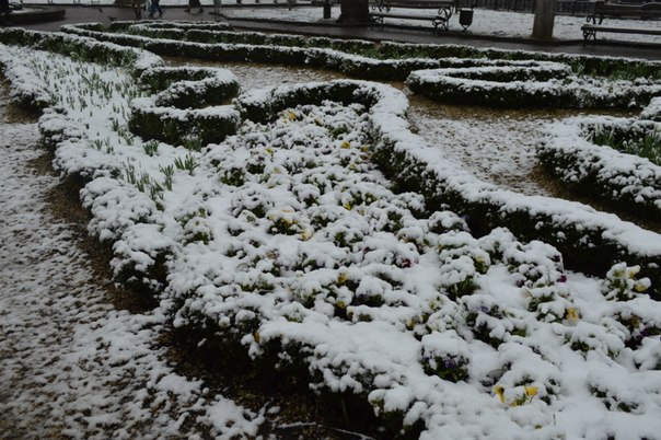Негода завдала збитків й комунальникам: ще вчора висаджені на клумбах квіти покрились шаром снігу, а тротуари встелились поваленими гілками.