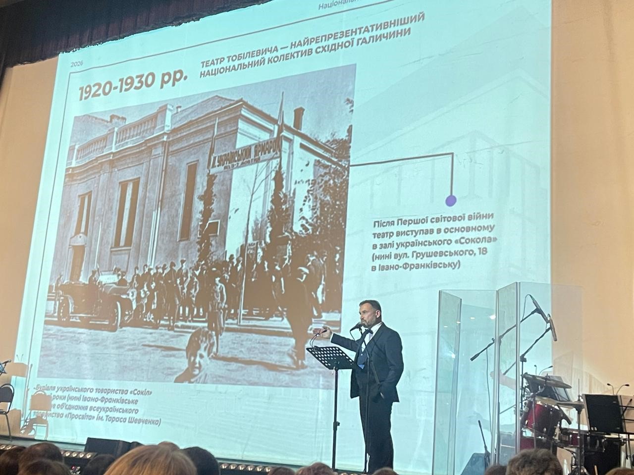 Ростислав Держипільський на відкритті заходів до 115-річчя українського театру в Станіславі розповідає про його історію