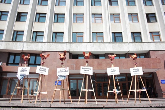 Свинячі голови під стінами адмінбудівлі Івано-Франківської ОДА, обрізані язики, повстанські пісні й гасла на захист української мови – саме так в Івано-Франківську протестують проти скандального мовного законопроекту Ківалова-Колісніченка.