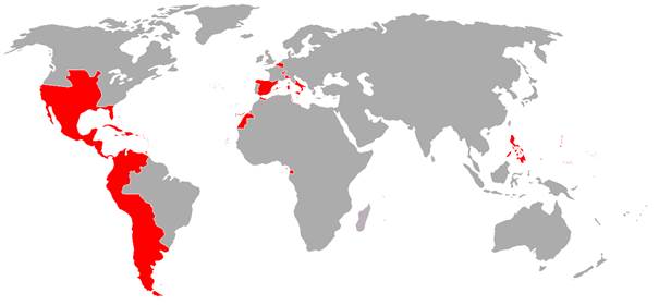 Карта іспанської колоніальної імперії 1800 р.