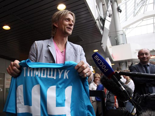 Розчулений Тимощук вийшов із машини, після чого відразу отримав із рук фанатів зенітівську футболку з 44-м номером і капітанську пов'язку (з цими атрибутами Анатолій вигравав Кубок УЄФА).
