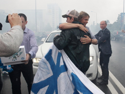 Коли машина з Анатолієм від'їжджала з паркінгу перед будівлею аеропорт, кілька людей вишикувалися вздовж дороги з фаєрами. Водій зупинився перед банером, розгорнутим поперек дороги: "Ми чекали на тебе, Капітане!".