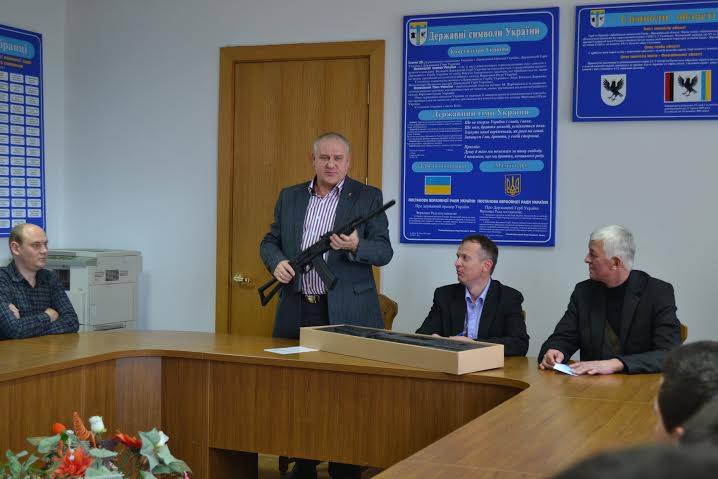 Василь Кіндій і Богдан Станіславський подарували молоді Тисмениці шість навчальних автоматів (прототип автомата Калашникова).