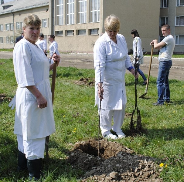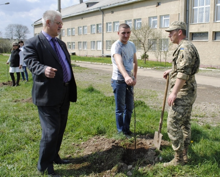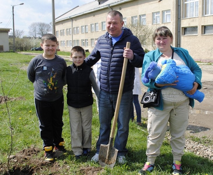 Дванадцять воїнів АТО, а також працівники лікарні висадили 300 фруктових дерев біля Богородчанської ЦРЛ.