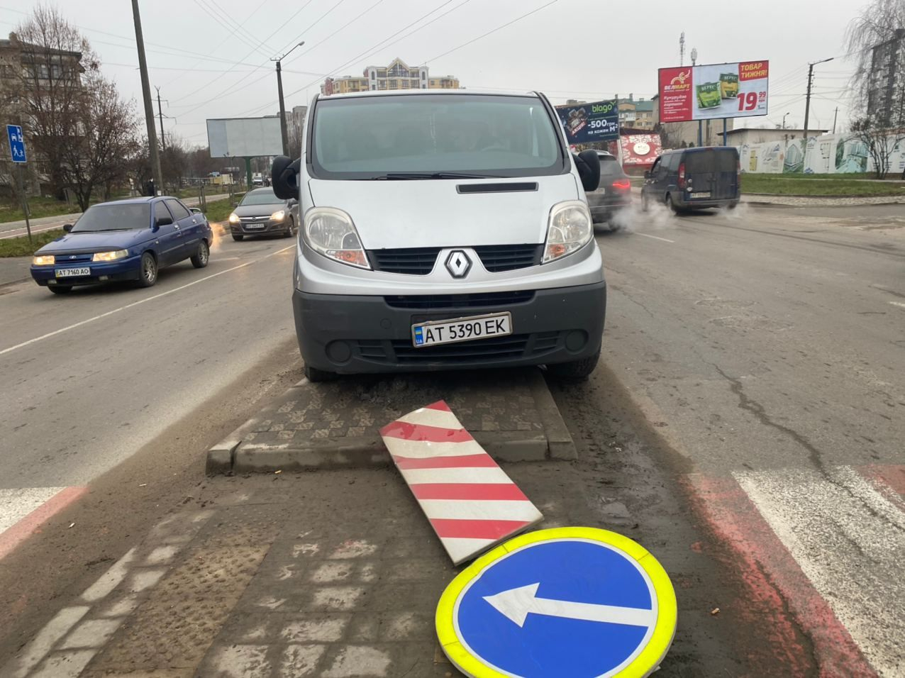 Встановлено, що 24-річний водій Renault Trafic не стежив за дорожньою обстановкою та не дотримався безпечної швидко руху, внаслідок чого наїхав на «острівок безпеки», при цьому зніс дорожній знак.