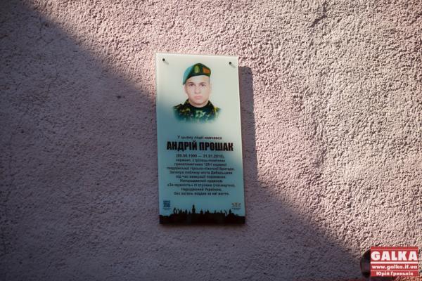 30 травня на фасаді обласного ліцею-інтернату для обдарованих дітей з сільської місцевості, що на вулиці Юності, відкрили анотаційну дошку загиблому бійцю АТО Андрію Прошаку.