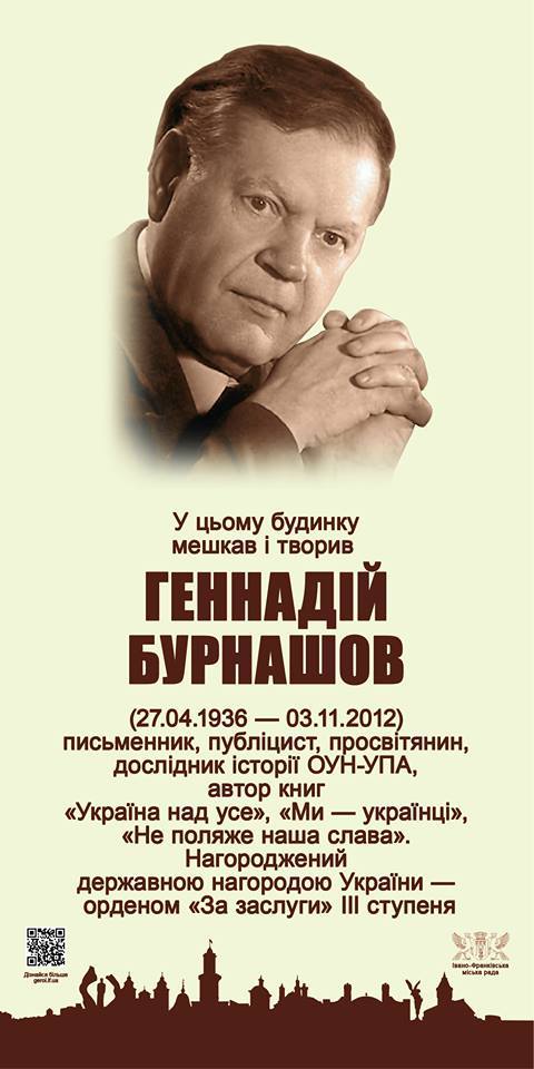 На вулиці Галицькій, 32 з'явиться пам’ятна анотаційна дошка відомому письменнику, публіцисту, досліднику ОУН-УПА Геннадію Бурнашову.