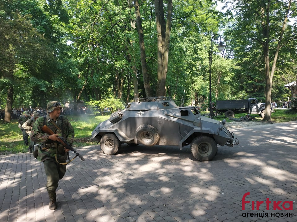 Після цього колона рушила до міського парку ім. Тараса Шевченка, де відбулась військово-історична реконструкція "Бій підрозділу УПА проти підрозділів німецького Вермахту та НКВС".