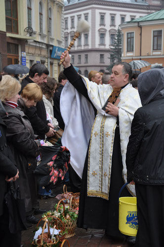 Цьогоріч великодній настрій дещо зіпсувала погода, адже освячували паску під парасолями.
