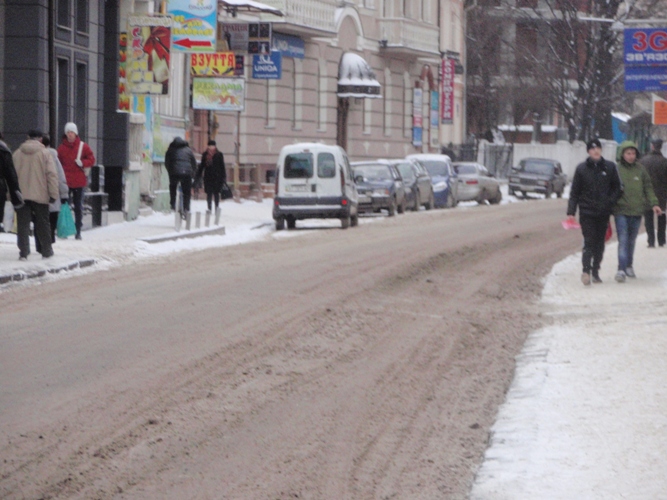 Окрім очистки пішохідної частини Івано-Франківська від снігу, про яку комунальники міста певно забули, існує ще й очистка проїжджої частини.