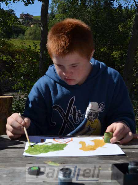 Лесі Барасюк – 22 роки. В неї вроджена аномалія зору. Дівчина майже не бачить, але успішно виводить на папері сонце, гори та воду. Їй допомагає мама: підбирає кольори, розповідає, хто сидить поруч. За 12 років навчання в реабілітаційному центрі «Дивосвіт», сім’я Барасюків вперше на такому відпочинку, інформують Паралелі.