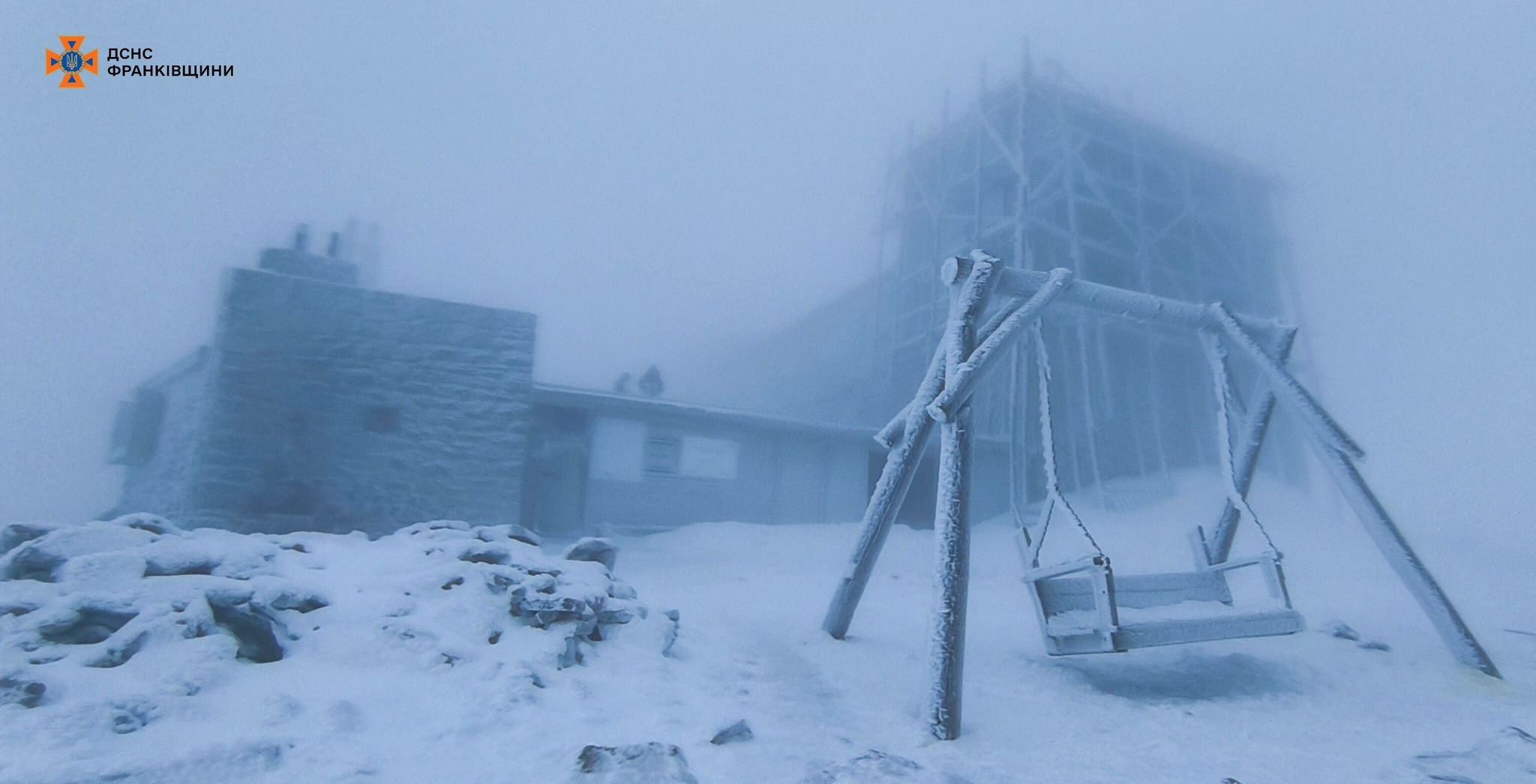 Станом на 08:00, 30 листопада, на горі Піп Іван Чорногірський хмарно, густий туман, пориви південно-східного вітру до 20 м/с. Температура повітря опустилася до -2°C.