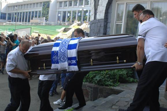 Потім під оплески глядачів, які зайняли три сектори на стадіоні, та динамівський гімн катафалк з труною зробив останнє коло пошани для видатного футболіста та тренера і вирушив на Байкове кладовище.