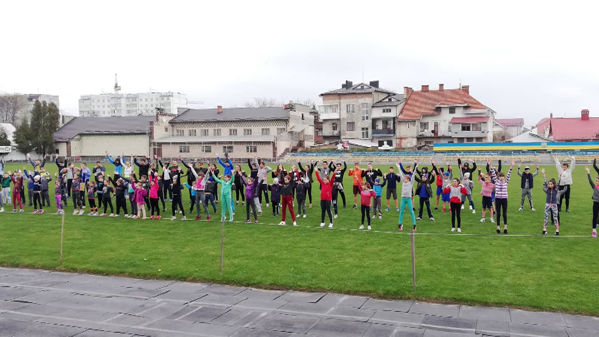 Майже півтисячі коломийських дітей одночасно виконували гімнастичні вправи.