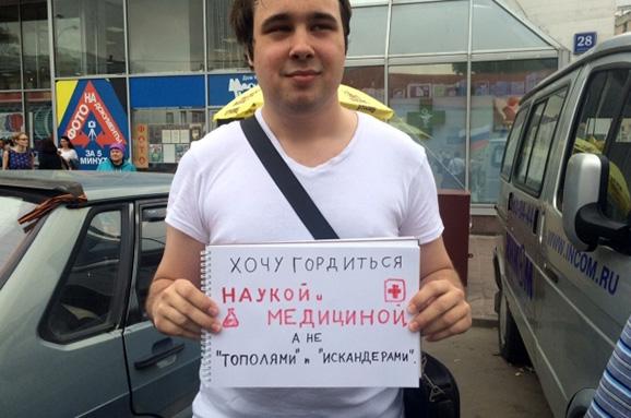 "В умовах промивання мізків у російських ЗМІ ми мало що можемо змінити і конкурувати з істеричною пропагандою, але треба такі заходи проводити, щоб люди бачили, що не всі підтримують таку агресивну політику. На це потрібен час, ми оптимісти", - сказав один з організаторів акції Валерій Надєждін.