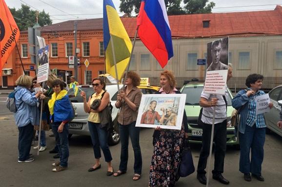Часто на аналогічні пікети в Москві здійснюють напади агресивно налаштовані прихильники Путіна з прокремлівського руху НВР.