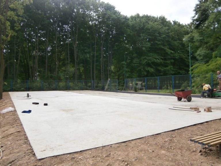Силами підприємства було вирито котлован та засипано подушку із піщано-гравійної суміші. Підрядною організацією залито бетонну основу для подальшого мощення штучним покриттям. В червні місяці 2016 року завершились роботи по безпосередньому мощенню сучасного двохшарового універсального поліуретанового покриття на майданчику.