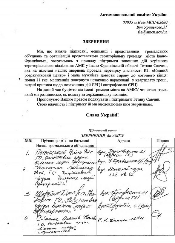 Також, як розповідають у Народній раді, раніше подібне звернення до АМК було направлене і від мешканців Івано-Франківська.