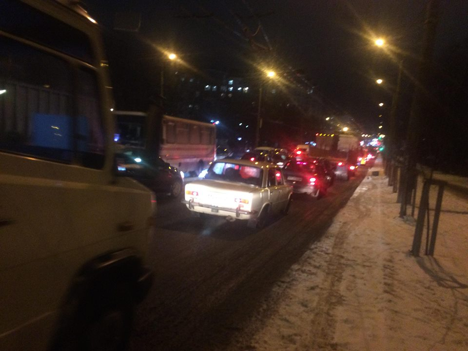 Така ситуація на дорозі склалася через поломку двох тролейбусів, інформує Фіртка.