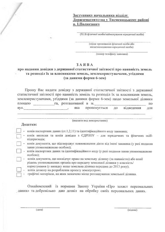 - довідку про наявність у Державному земельному кадастрі відомостей про одержання у власність земельної ділянки у межах норм безоплатної приватизації за певним видом її цільового призначення;