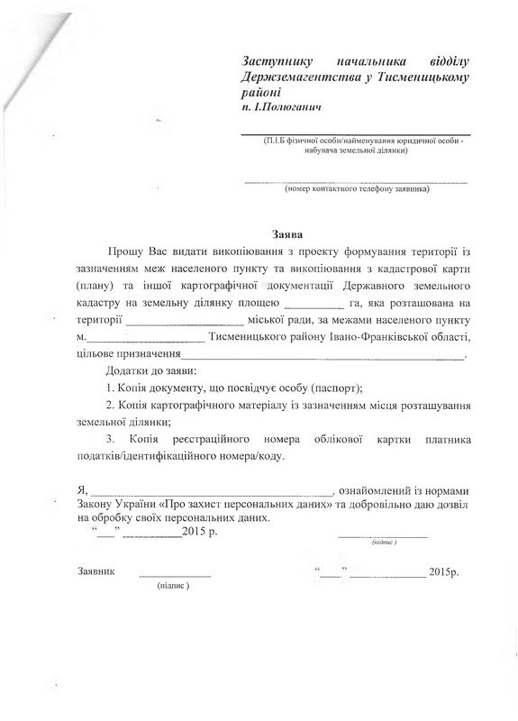 Виконавчим комітетом міської ради отримано листа за підписом першого заступника начальника Головного управління Держземагентства в Івано-Франківській області С.Жили про те, що у Тисменицькому районі виділятимуться земельні ділянки для ведення садівництва фізичним особам.