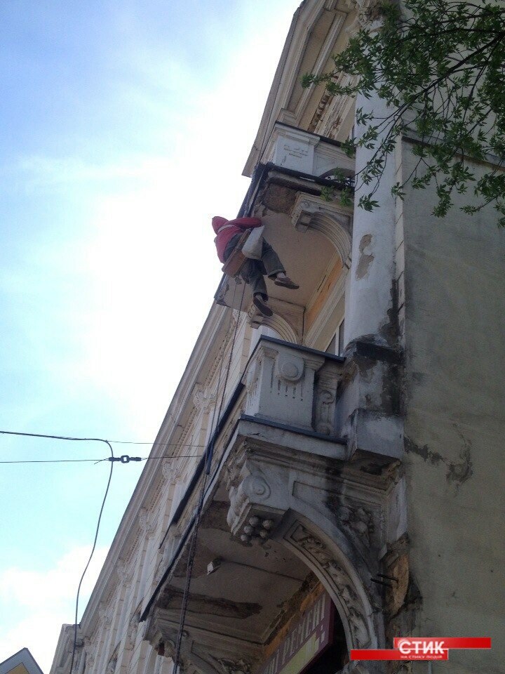 Спершу місце обвалу просто огородили, а потім там почав працювати чоловік, щоб зчистити з балкону решту штукатурки, пише Фіртка з посиланням на Стик.