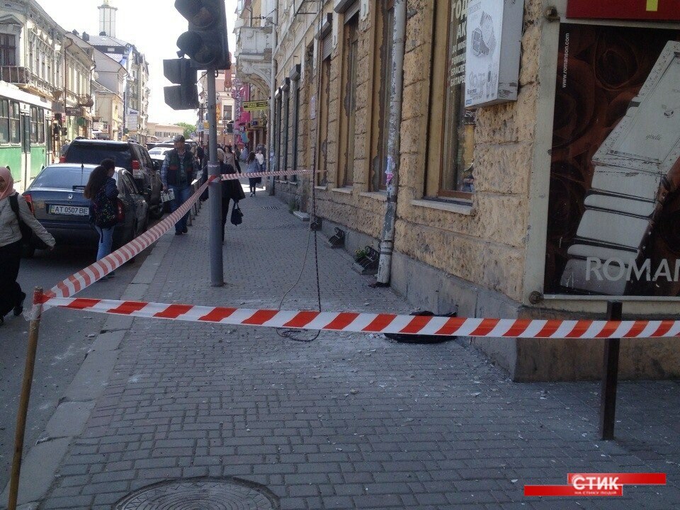 В Івано-Франківську на перехресі вулиць Галицької та Дністровської, навпроти універмагу "Прикарпаття" розсипається будинок.