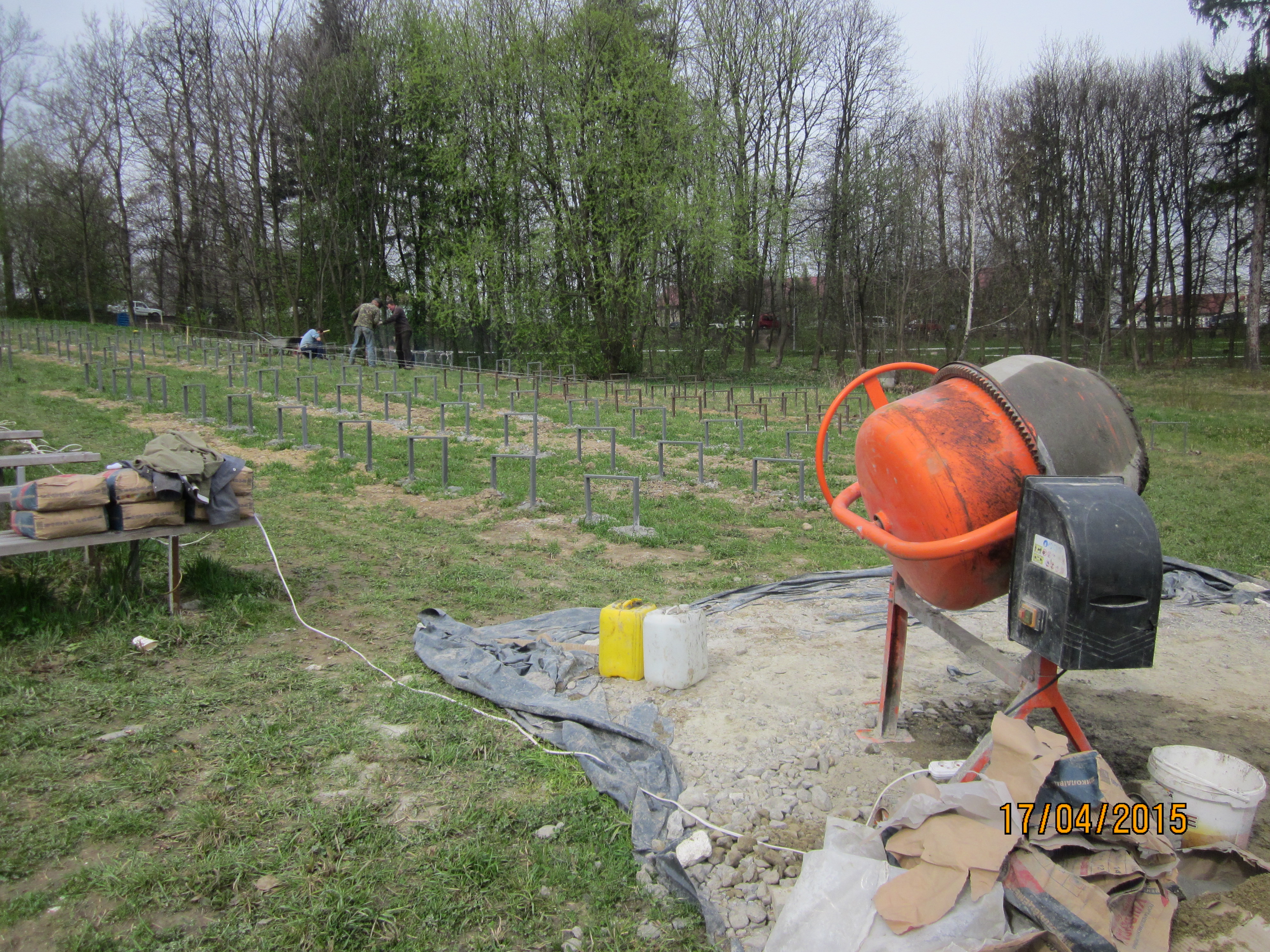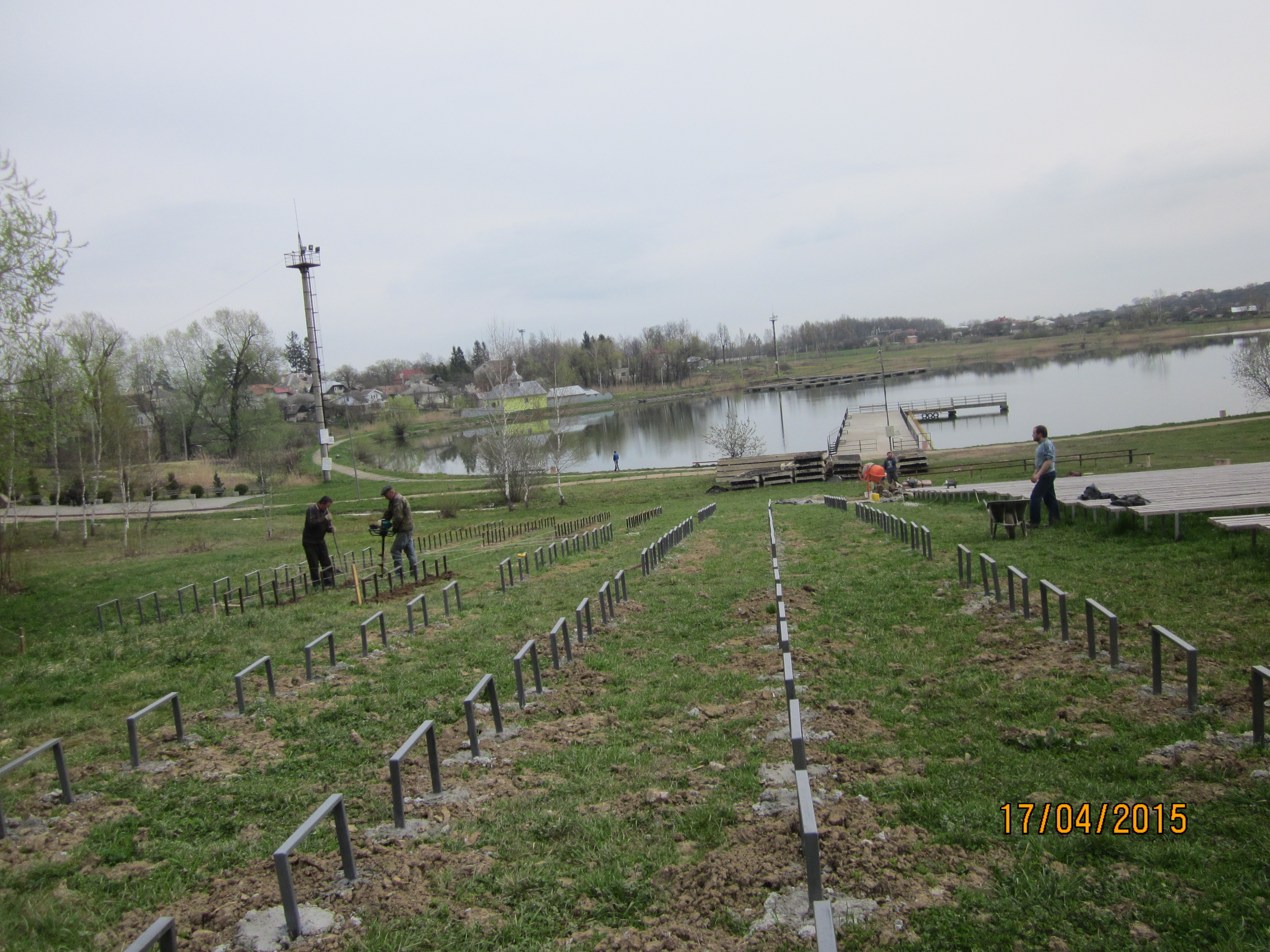 Зараз встановлюють залізні кріплення, а згодом проводитимуть зварювальні роботи та облаштують дерев’яні лавки. Паралельно завозять матеріали для будівництва сцени. Ось так, малими кроками, виконуються великі обсяги робіт.