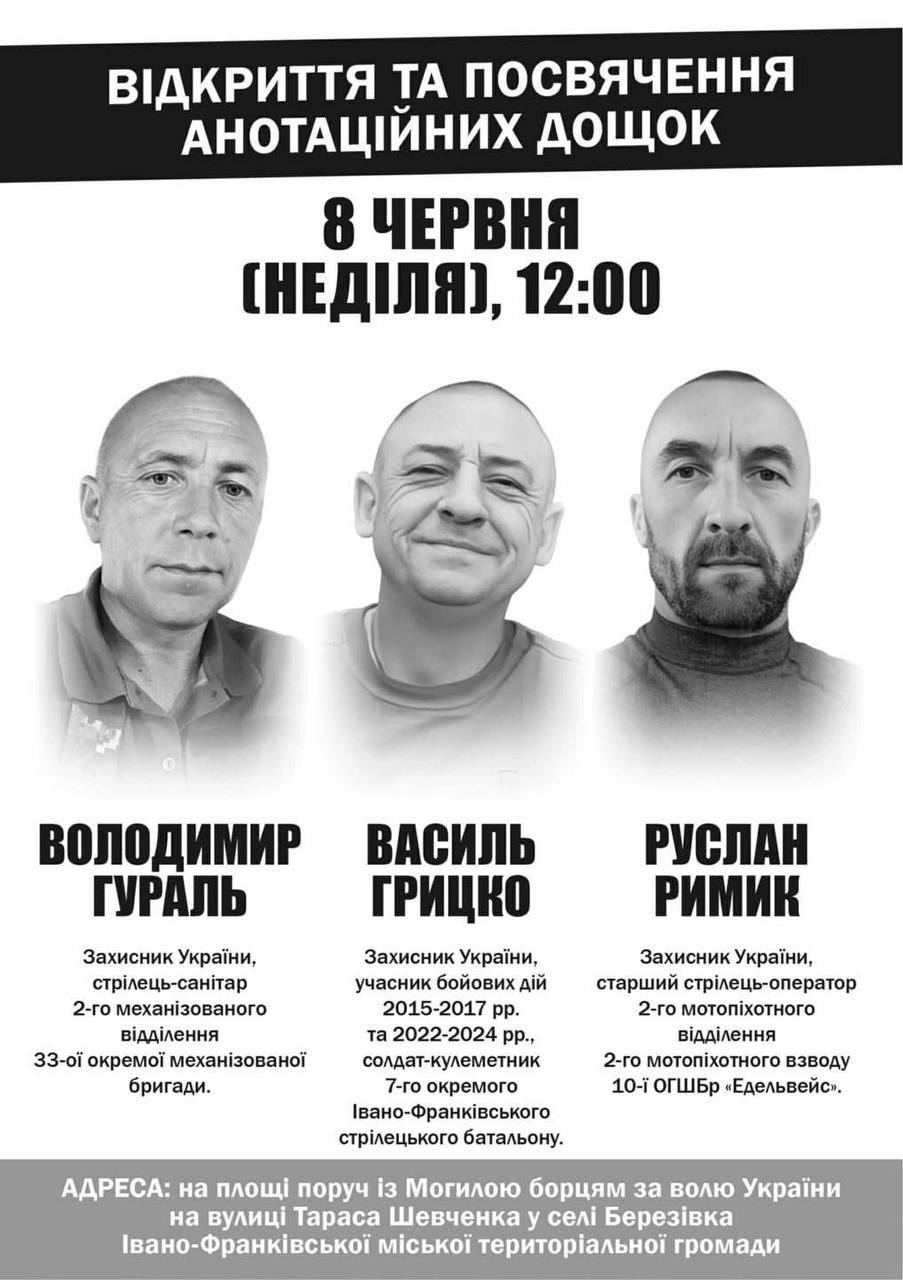 Володимир Гураль, Василь Грицко та Руслан Римик - загинули у боротьбі за Україну.