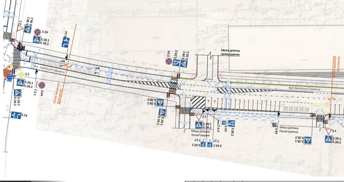 облаштування виділеної смуги для громадського транспорту та велосипедистів по всій протяжності;