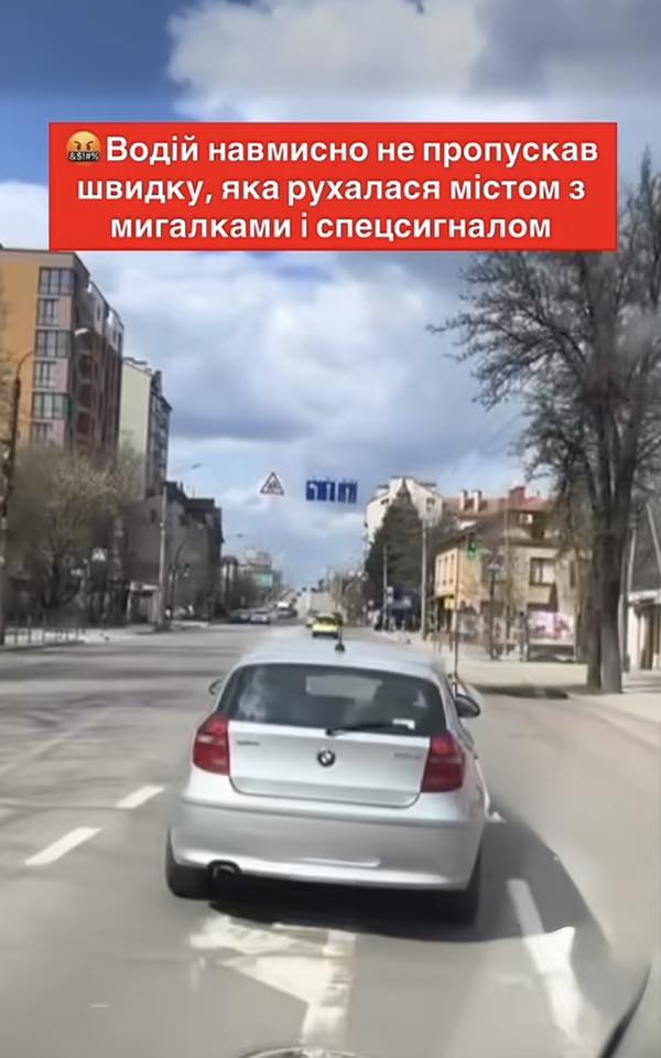 Як вказують, про порушення стало відомо після того, як у соціальних мережах 14 квітня опублікували відео: на ньому водій автомобіля BMW, рухаючись попереду карети швидкої, не надав їй переваги в русі.