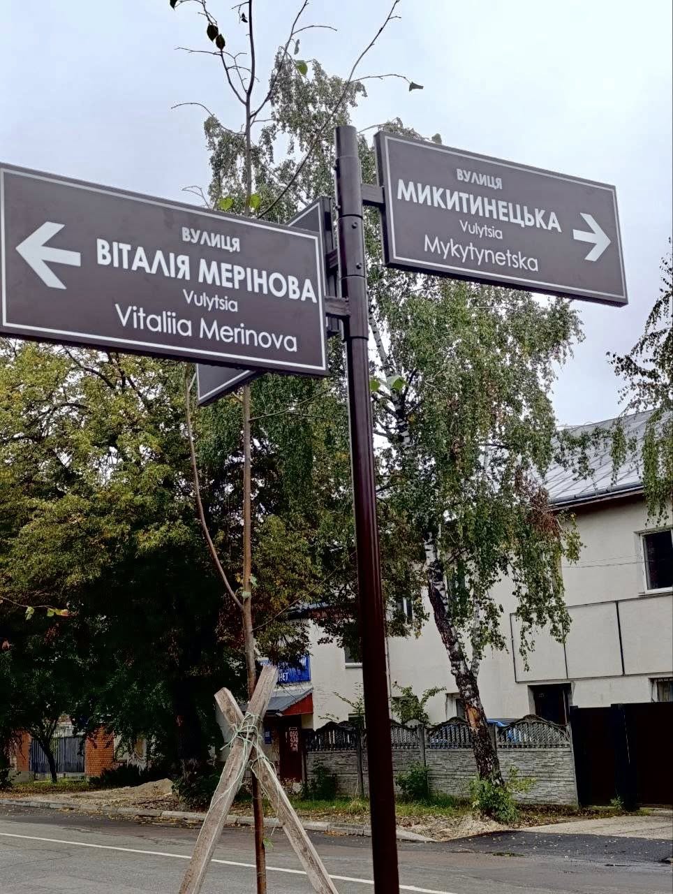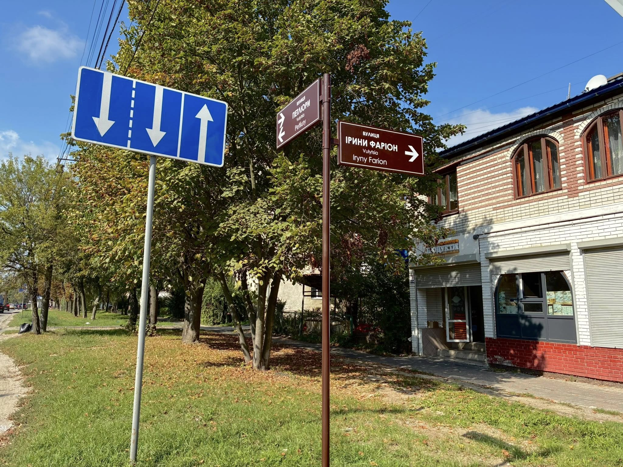 «Ви знаєте, де в місті Івано-Франківську вулиця Ірини Фаріон? А Віталія Мерінова? Героїв Охтирки? Дмитра Коцюбайла «Да Вінчі»? Ці та деякі інші вулиці було перейменовано, тому для кращого орієнтування, встановлюємо вказівники з новими назвами.