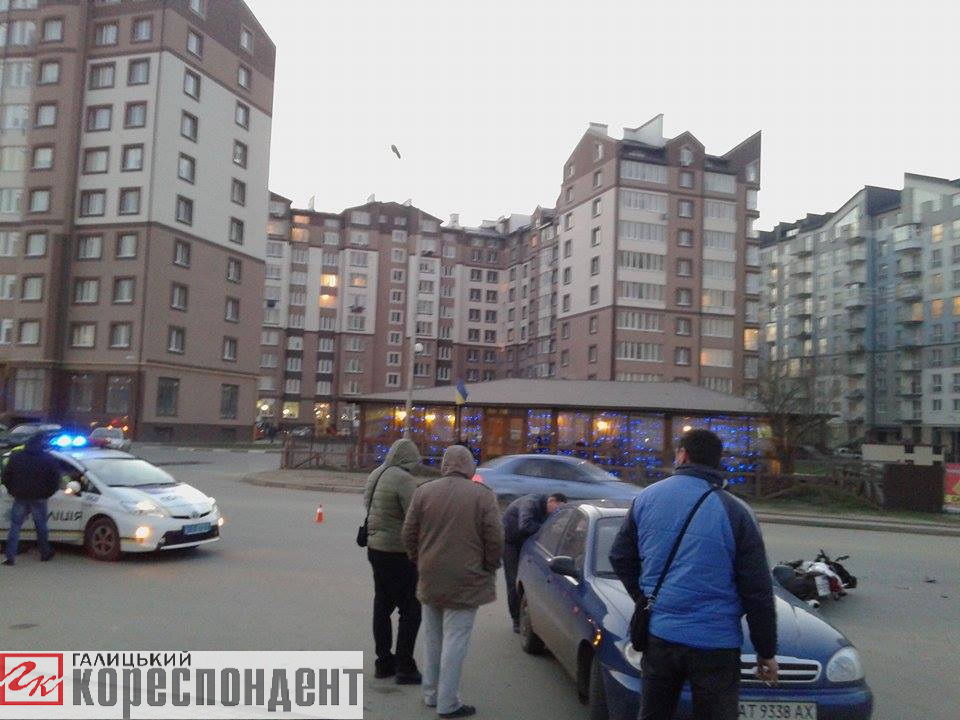 Водій мотоцикла у свою чергу теж стверджує, що не бачив автівки та рухався вулицею Івасюка. В результаті мотоцикліст намагаючись уникнути зіткнення впав разом з мотоциклом та ще декілька метрів так проїхав, зачепивши автомобіль, який рухався попереду.
