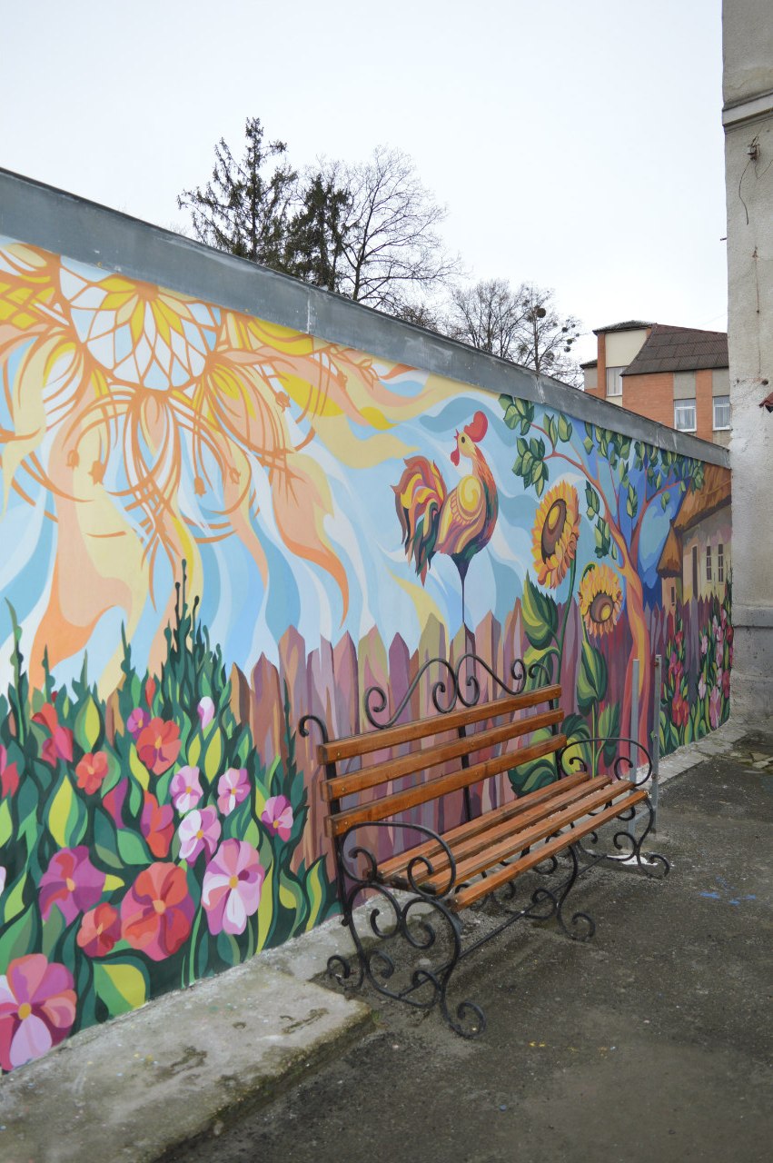 "Нас запримітила Вікторія Сусаніна, начальник фінансового управління ще коли ми вирішували організаційні питання щодо панно на Мазепи і запропонувала розписати паркан біля управління, хотіла щось таке світле, тепле, українське. Ну і я думаю ми з завданням справились", - каже художниця Оксана Парцей.