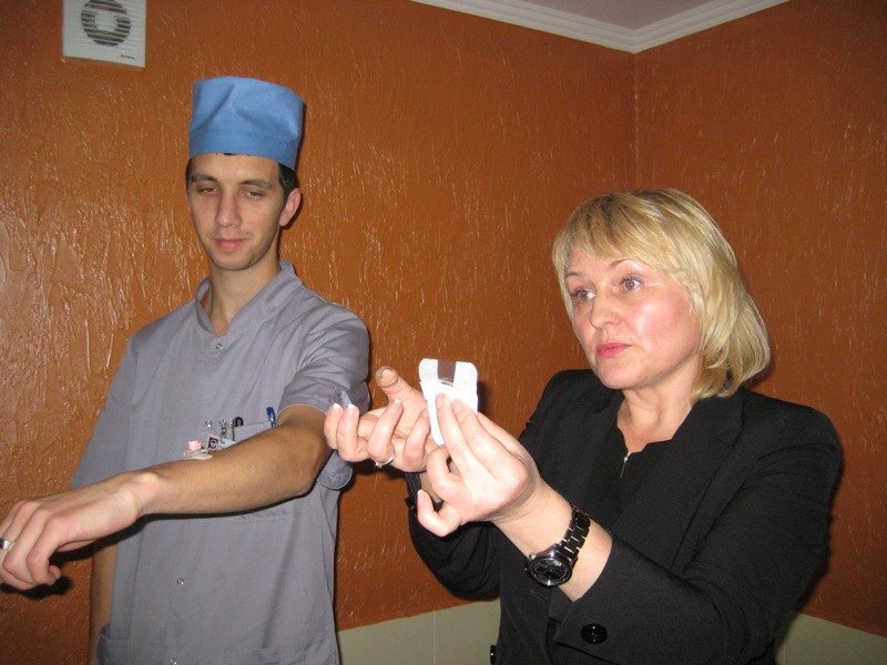 «Працівники медичних закладів довідалися про новітні технології проведення внутрівенних вливань, навчилися правильно вибрати розмір катетерів та голок, які, крім номерів, позначені ще й кольорами. Їм розказали про ускладнення, які можуть виникнути при маніпуляції, про правила асептики та антисептики, техніку виконання з метою безпеки самого персоналу, щоб не допустити інфікування збудниками, які передаються через кров», – розповіла заступник головного лікаря Центральної міської клінічної лікарні з медсестринства Галина Варивода.