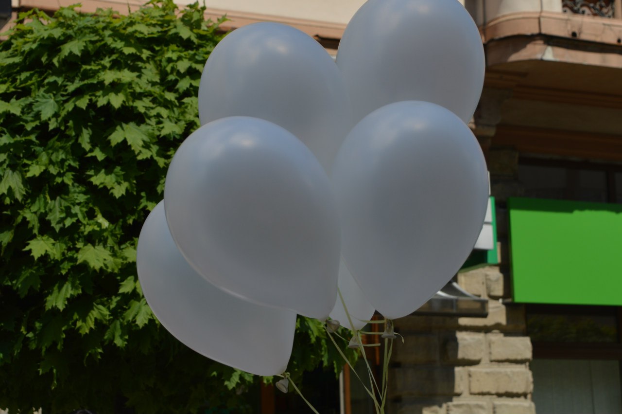 На пішохідній частині вулиці Незалежнгості для молодят розстелили великий весільний рушник і пари, які сьогодні одружуються або ж мають намір побратися проходять ним до символічної арки кохання. З дерева щастя вони зривають листівки-побажання, а потім відпускають повітряні кульки з написаними на них бажаннями.