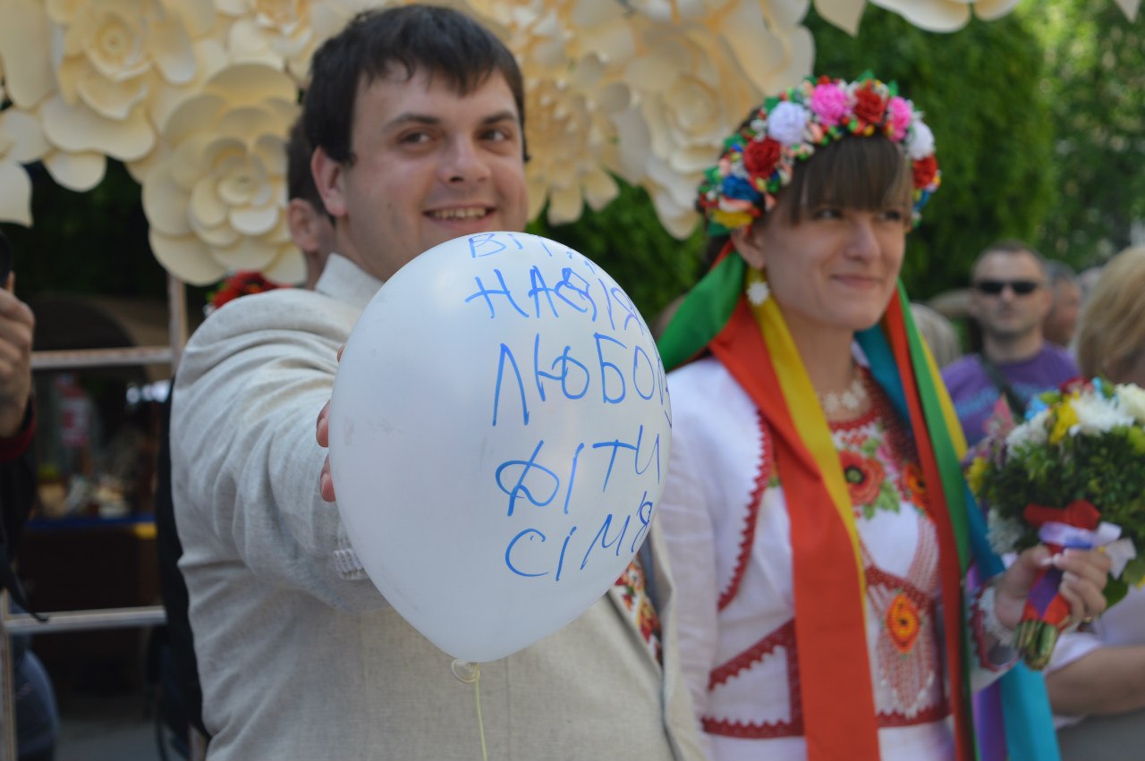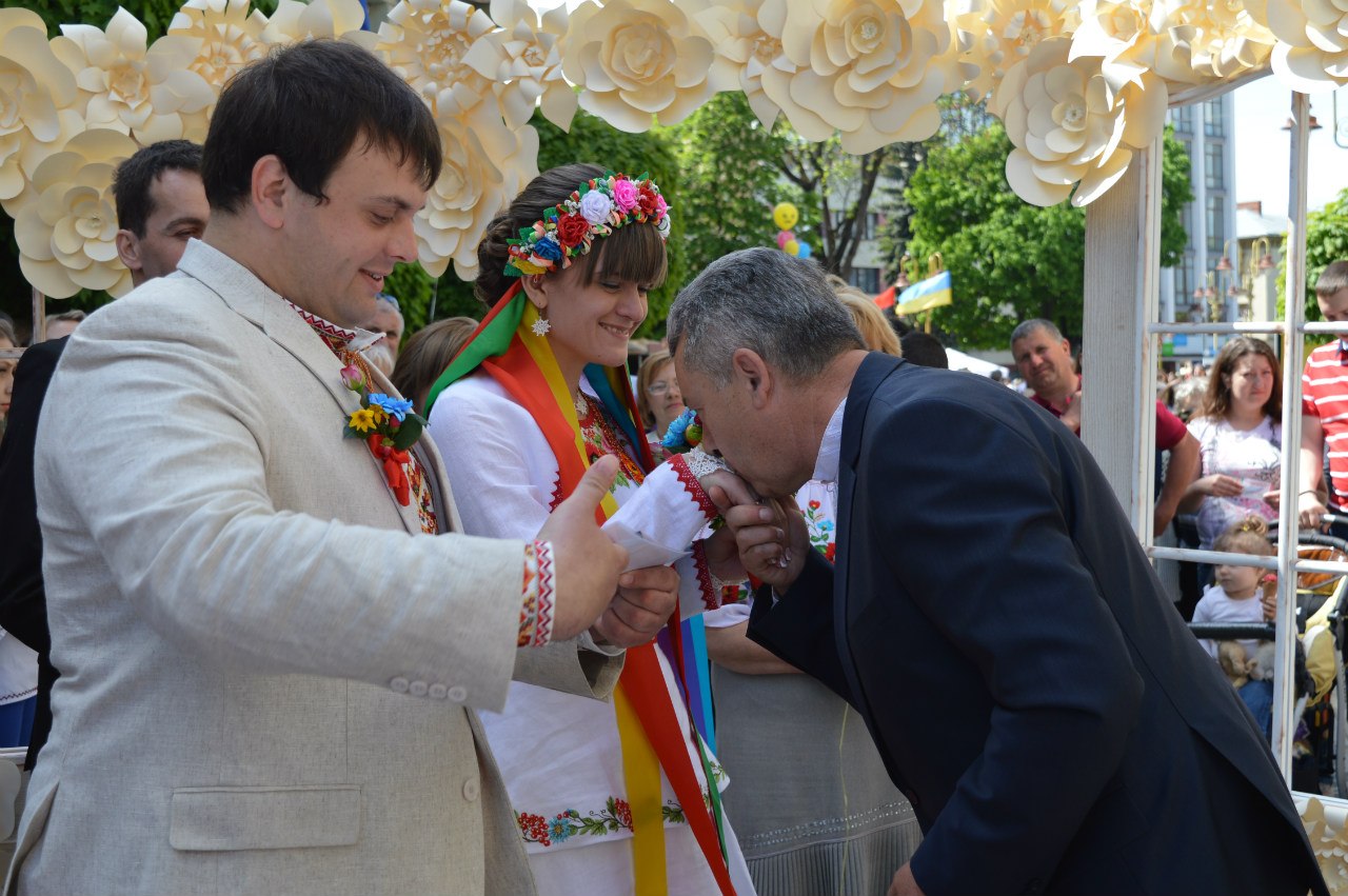 "Дозвольте привітати Вас із вашим сьогоднішнім свято. Любіть один одного, поважайте, розумійте один одного, довіряйте і йдіть на зустріч один одному. Народіть багато дітей, бо українців має бути багато. Нехай вони виростуть добрими людьми", - привітав молодят очільник міста.
