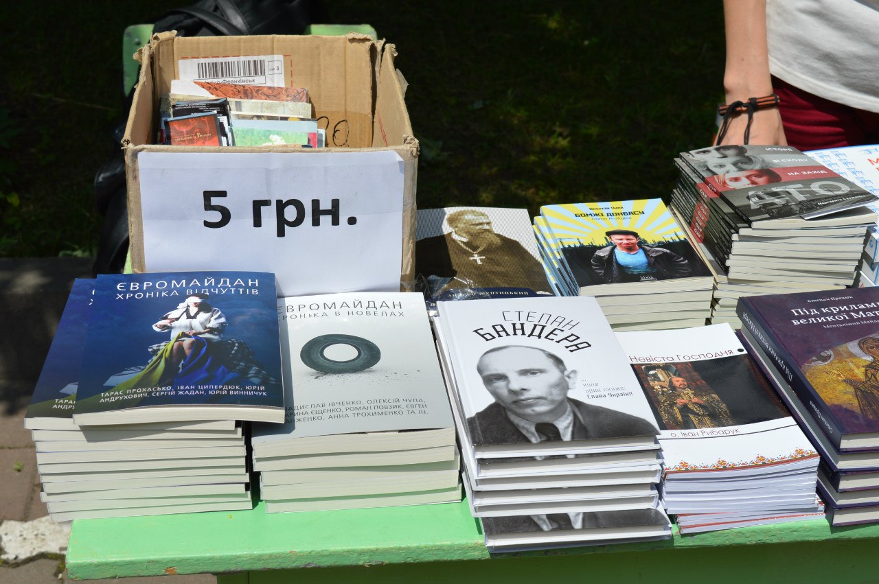 Книжки-новинки, які були представлені на виставці, продавала редактор деяких з цих видань, Антоніна Ряховська . За її словами, вже продана достатня кількість книжок, а найбільше покупці цікавляться книгами про Степана Бандеру і про Майдан, тобто те, що зараз на слуху.