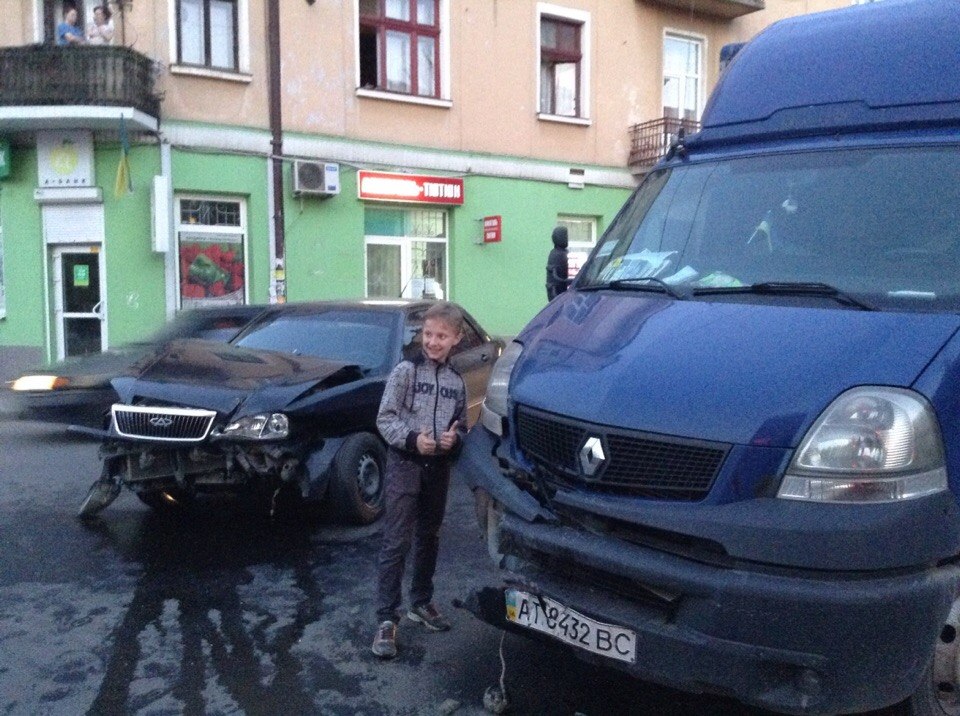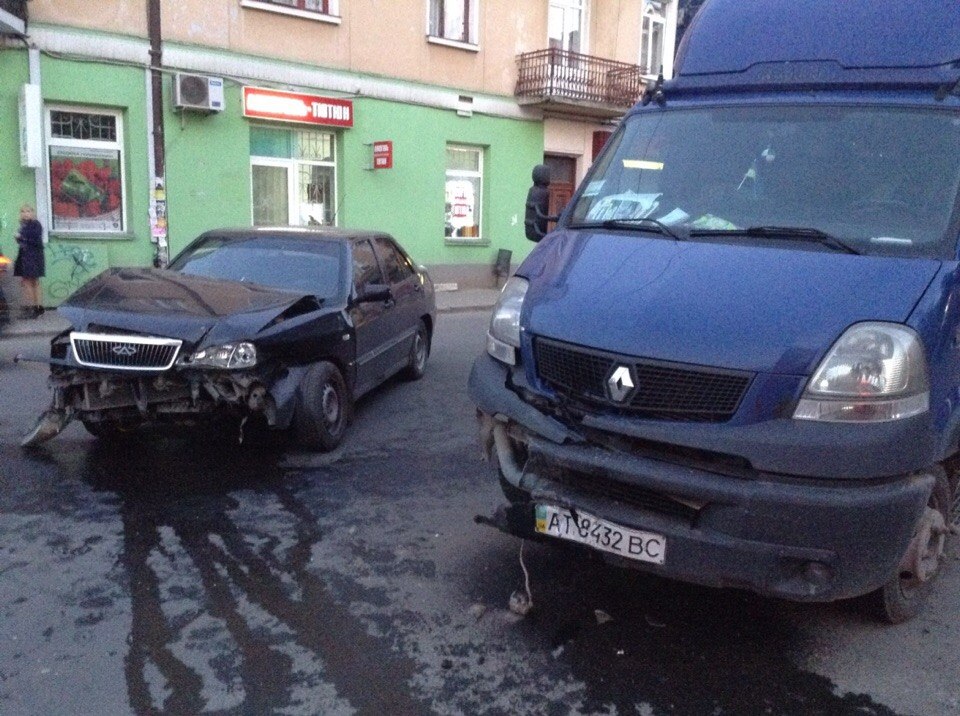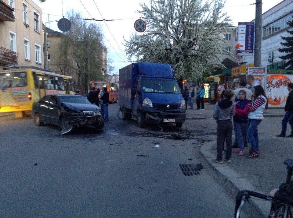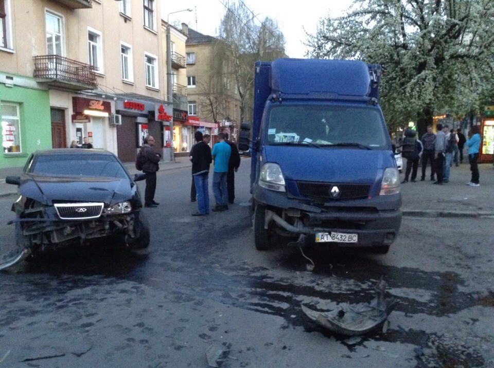 Розбилися легковик “Черрі” та вантажний мікроавтобус “Рено”. Як кажуть свідки, водій “Чері” раптово виїхав на Галицьку з Воїнів інтернаціоналістів (в напрямку центру). По головній в бік Пасічної рухався “Рено”, який не зміг уникнути зіткнення.
