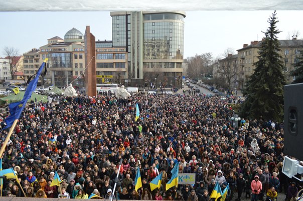 Тисячі мешканців Івано-Франківська продовжують збиратися на щоденне народне віче під стінами головної адмінбудівлі області.