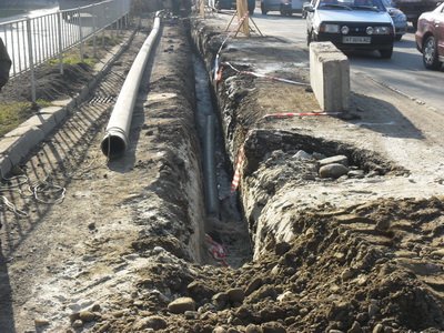 На вулиці Мазепи в Івано-Франківську триває будівництво водопроводу.