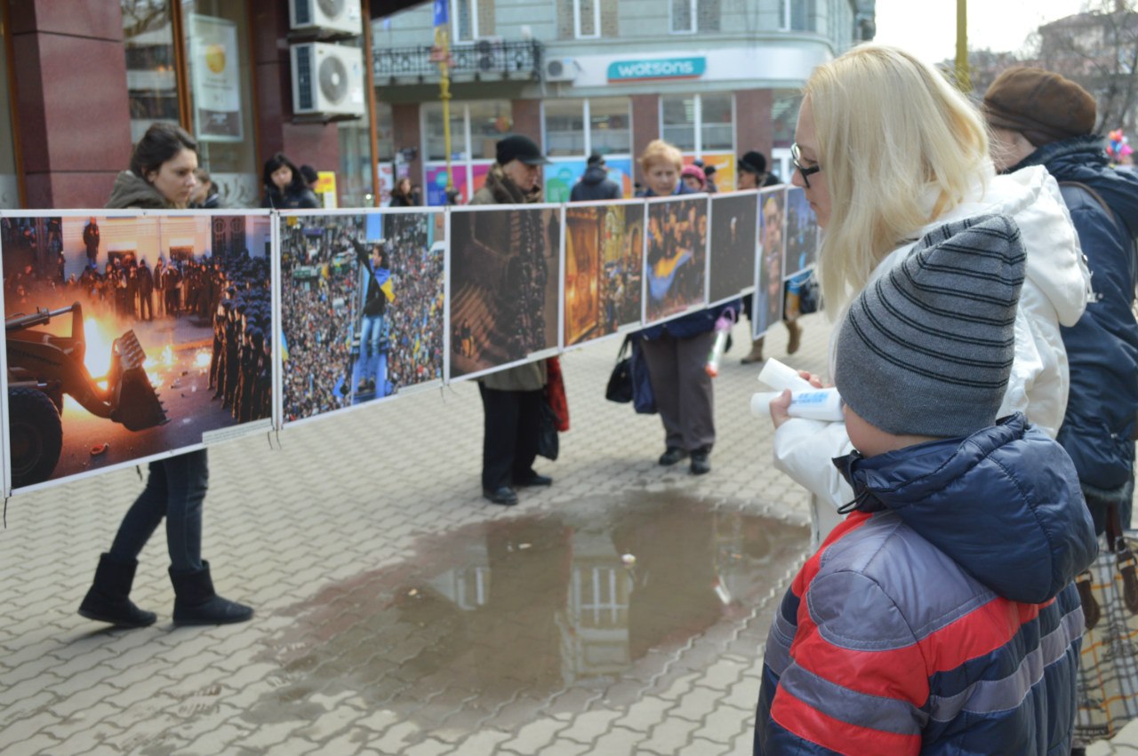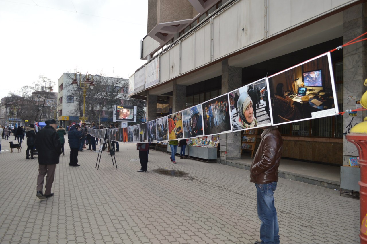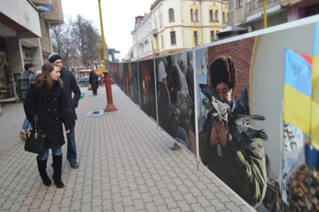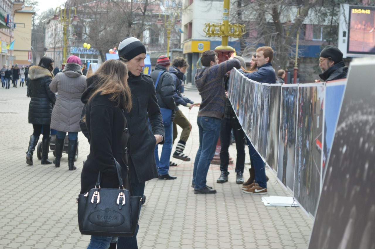 "Виставка до річниці Майдану була організована у Києві. Ми її там побачили, сконтактувалися з організаторами і привезли її сюди. Триватиме виставка декілька днів. Її основний принцип - вона повинна бути на вулиці, щоб побачило якомога більше людей", - розповіла волонтер Наталя Сербин.